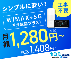 業界最安級!月額1,280円〜ギガ放題が利用できるカシモWiMAX